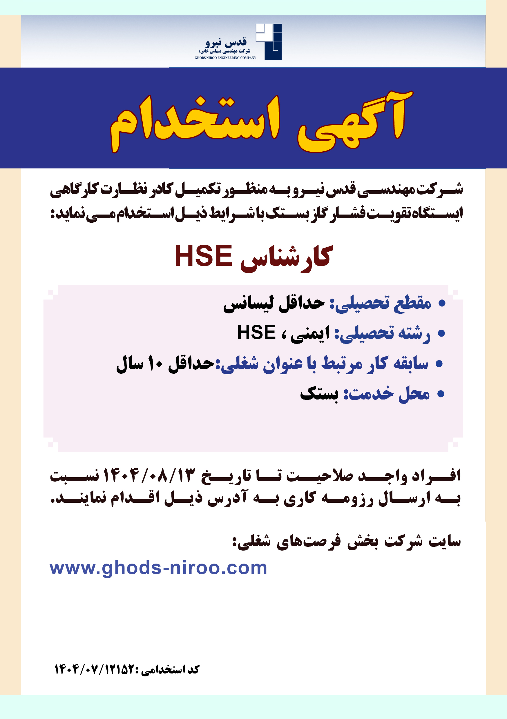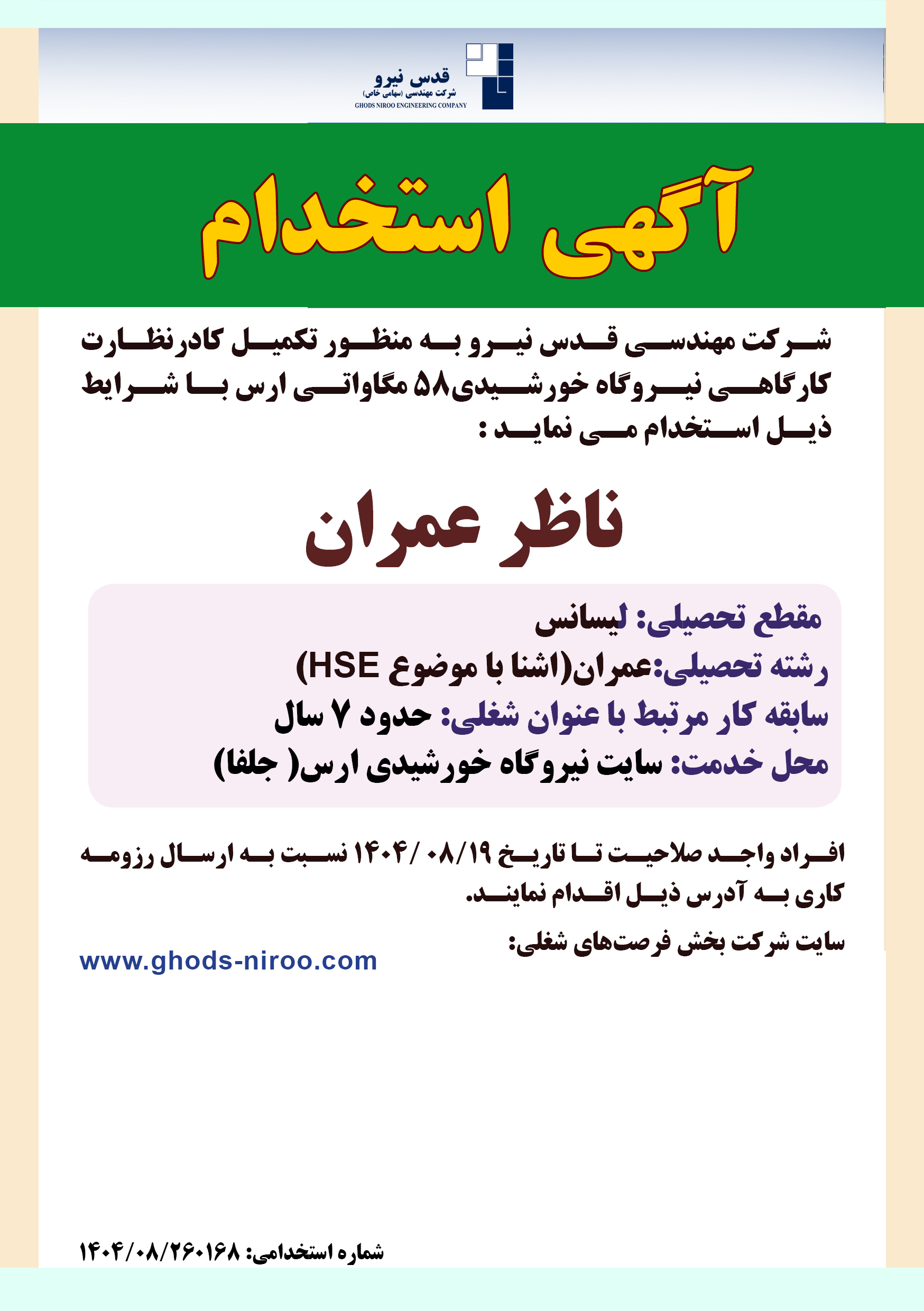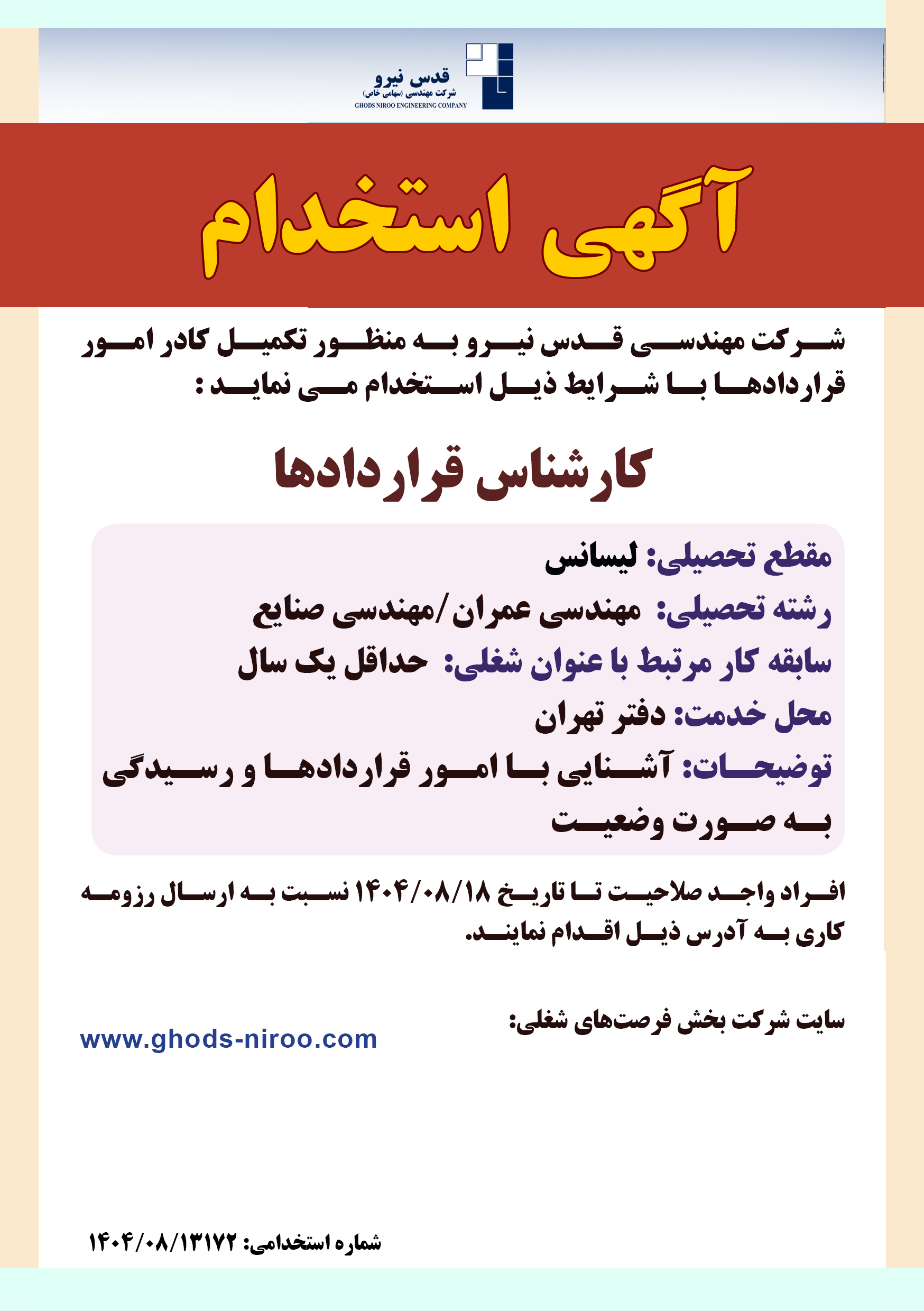فرصتهاي شغلي 5 آبان 1404 شركت مهندسي قدس نيرو