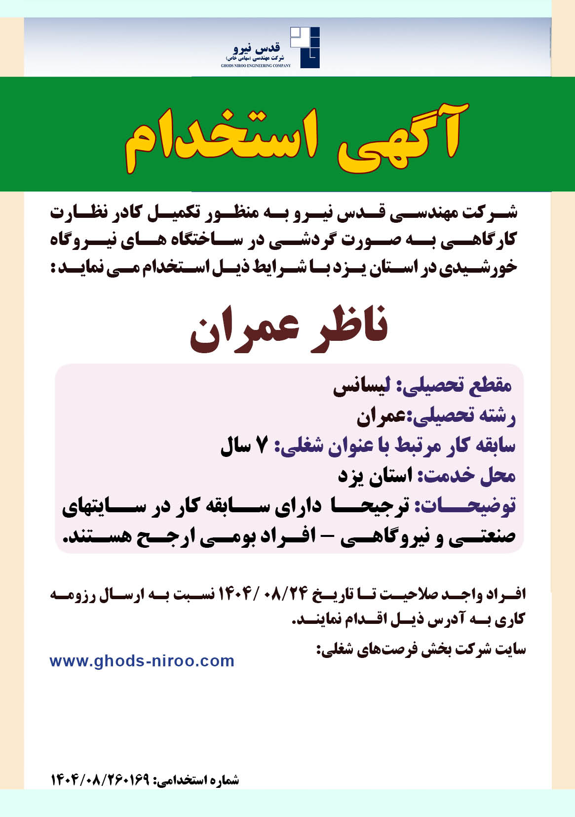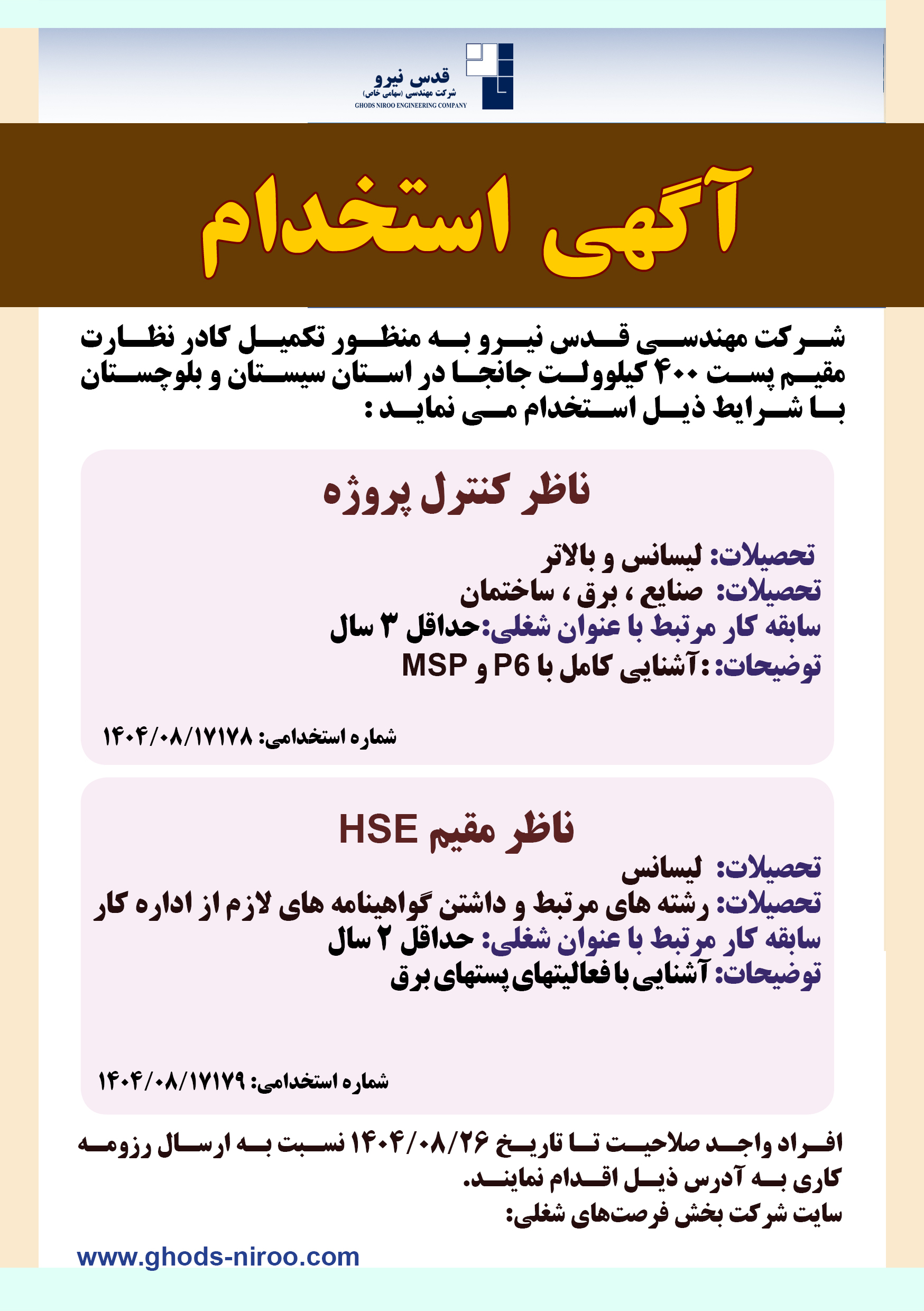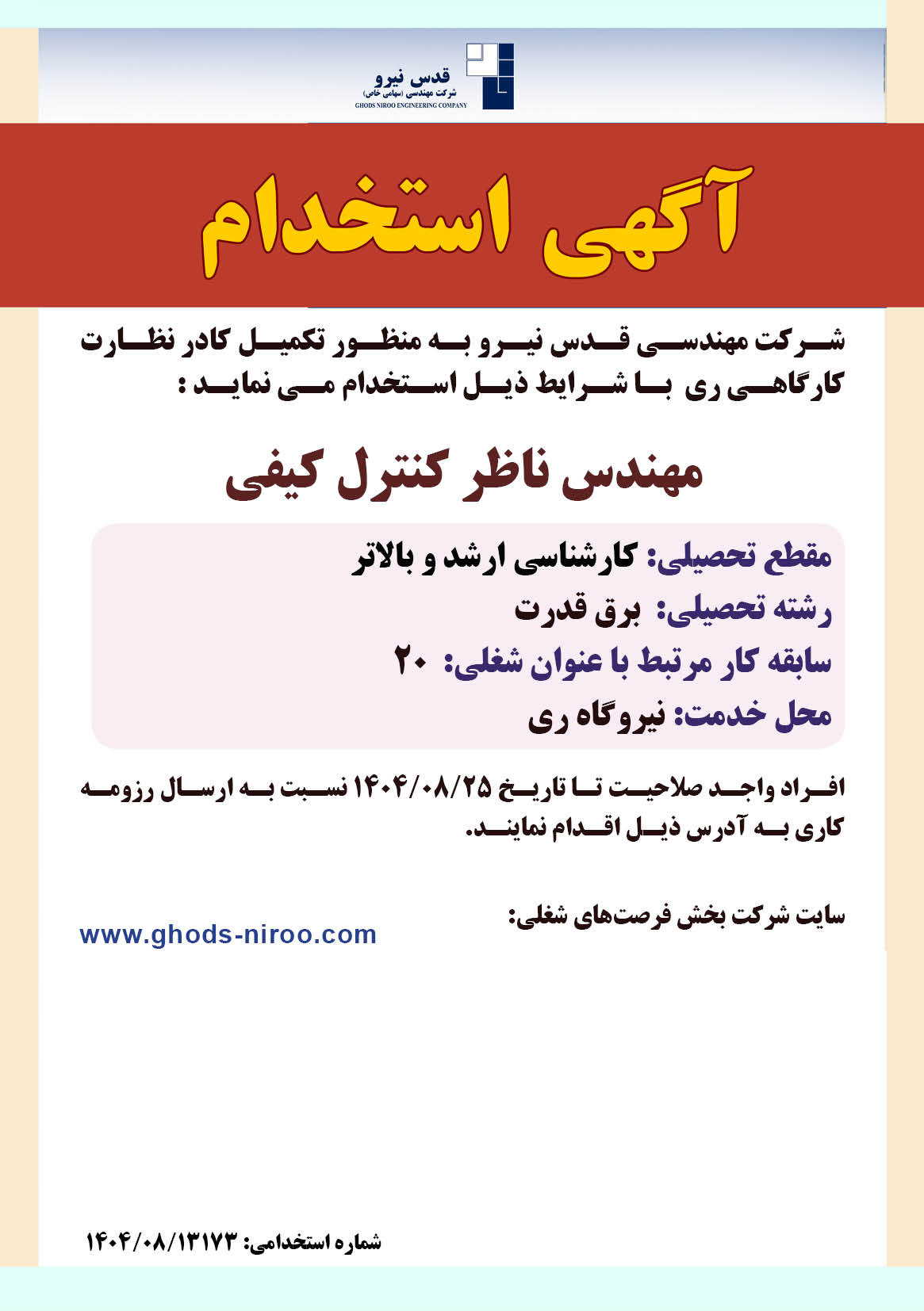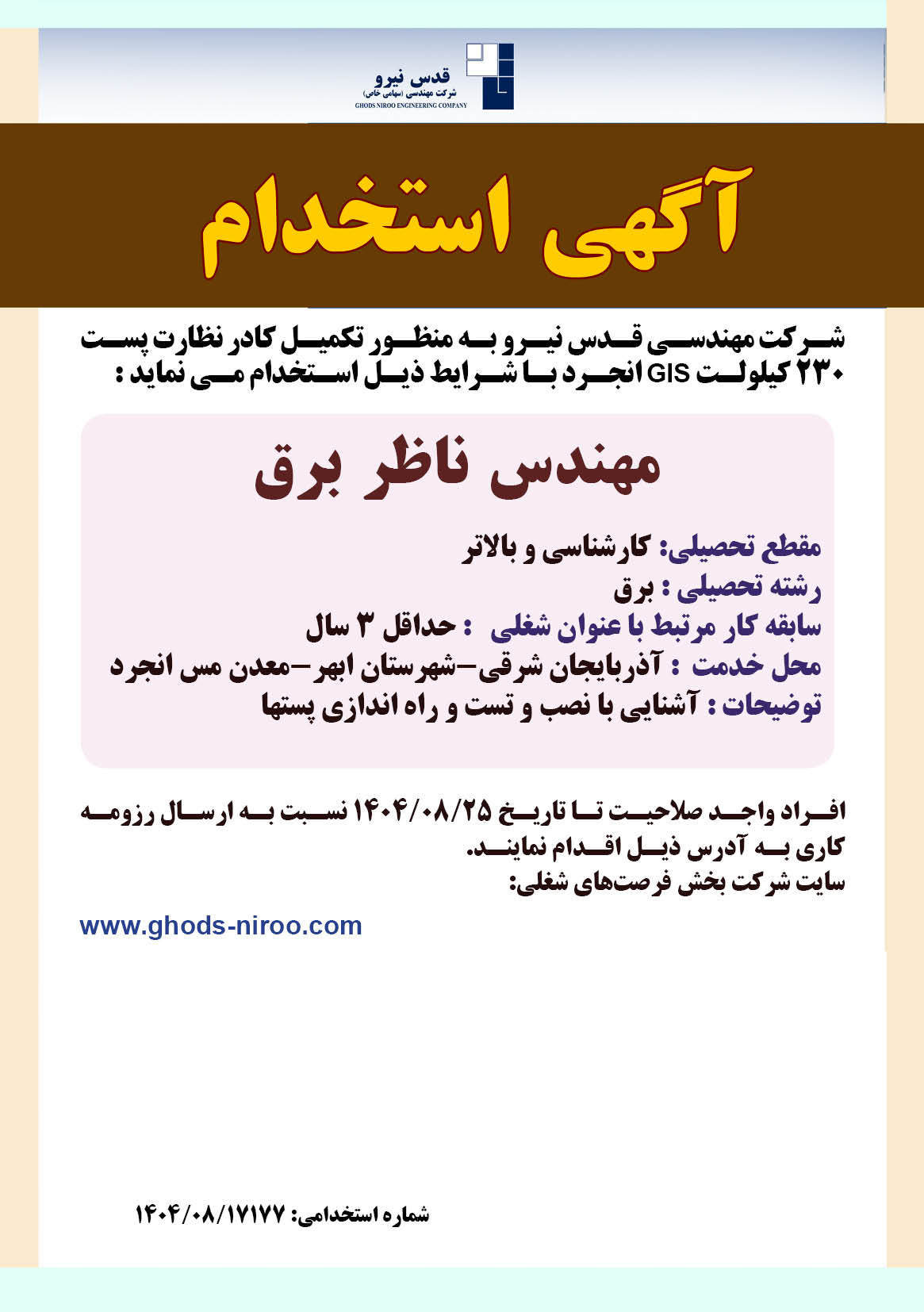 فرصتهاي شغلي 12 آبان 1404 شركت مهندسي قدس نيرو