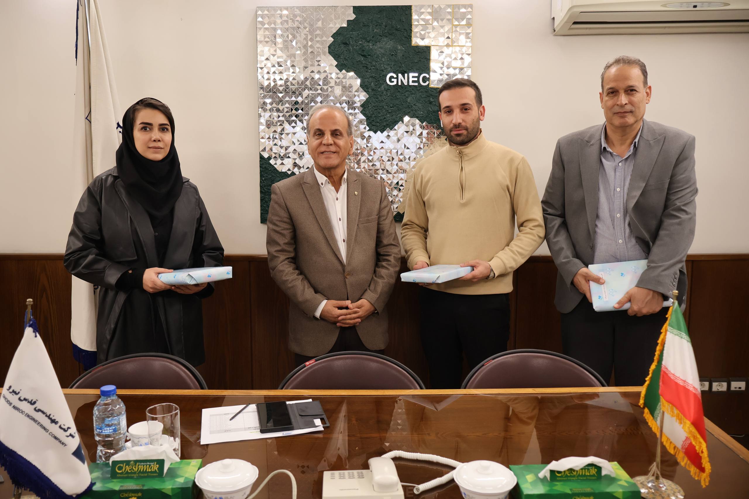 از سمت چپ تصوير: مهندسين خانمها فاطمه زمانزاده، محبوبه كاشانيانزاده، آقايان مهذب ترابي و مصطفي لوني (به نيابت آقاي ناربه باقراميان)