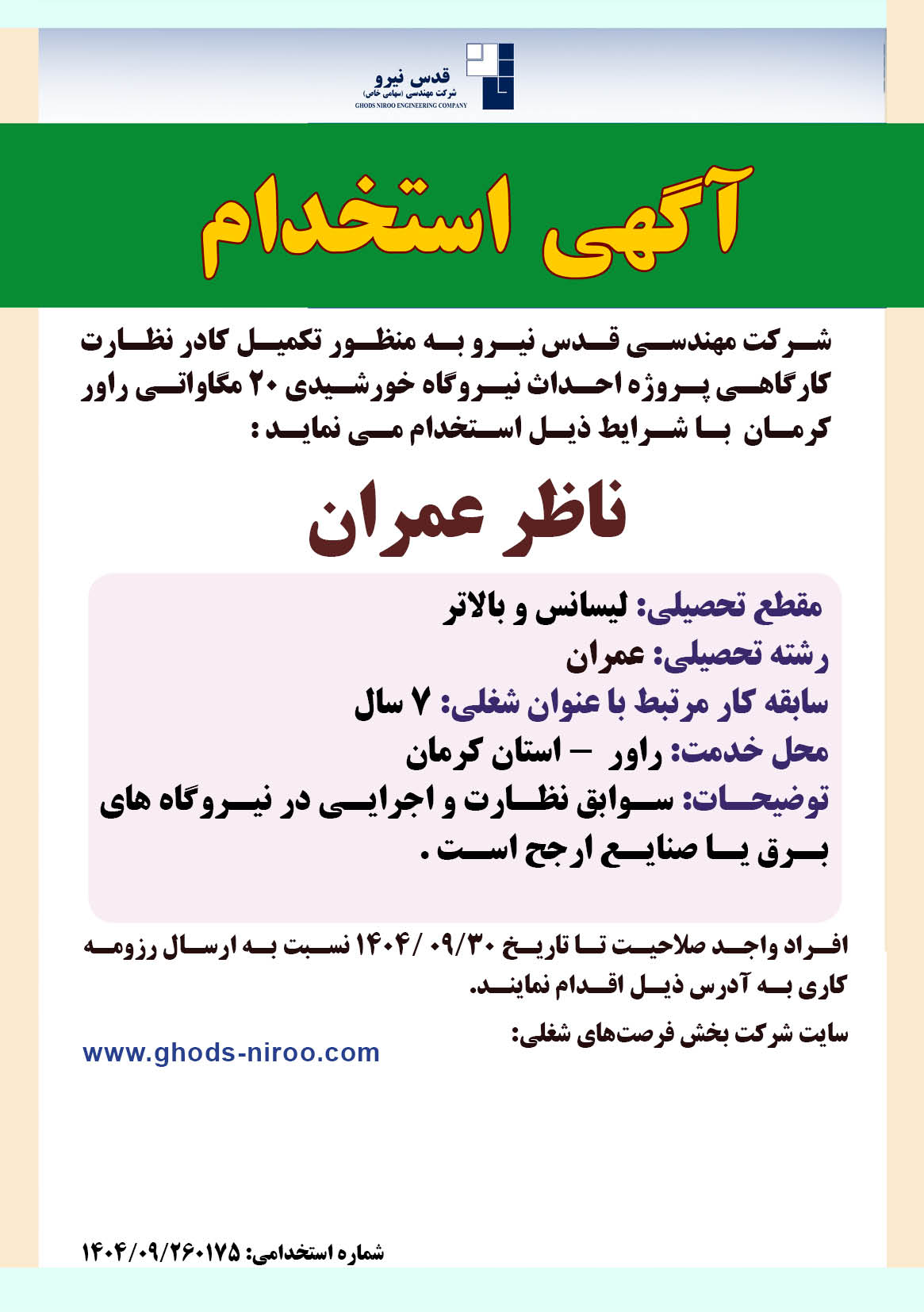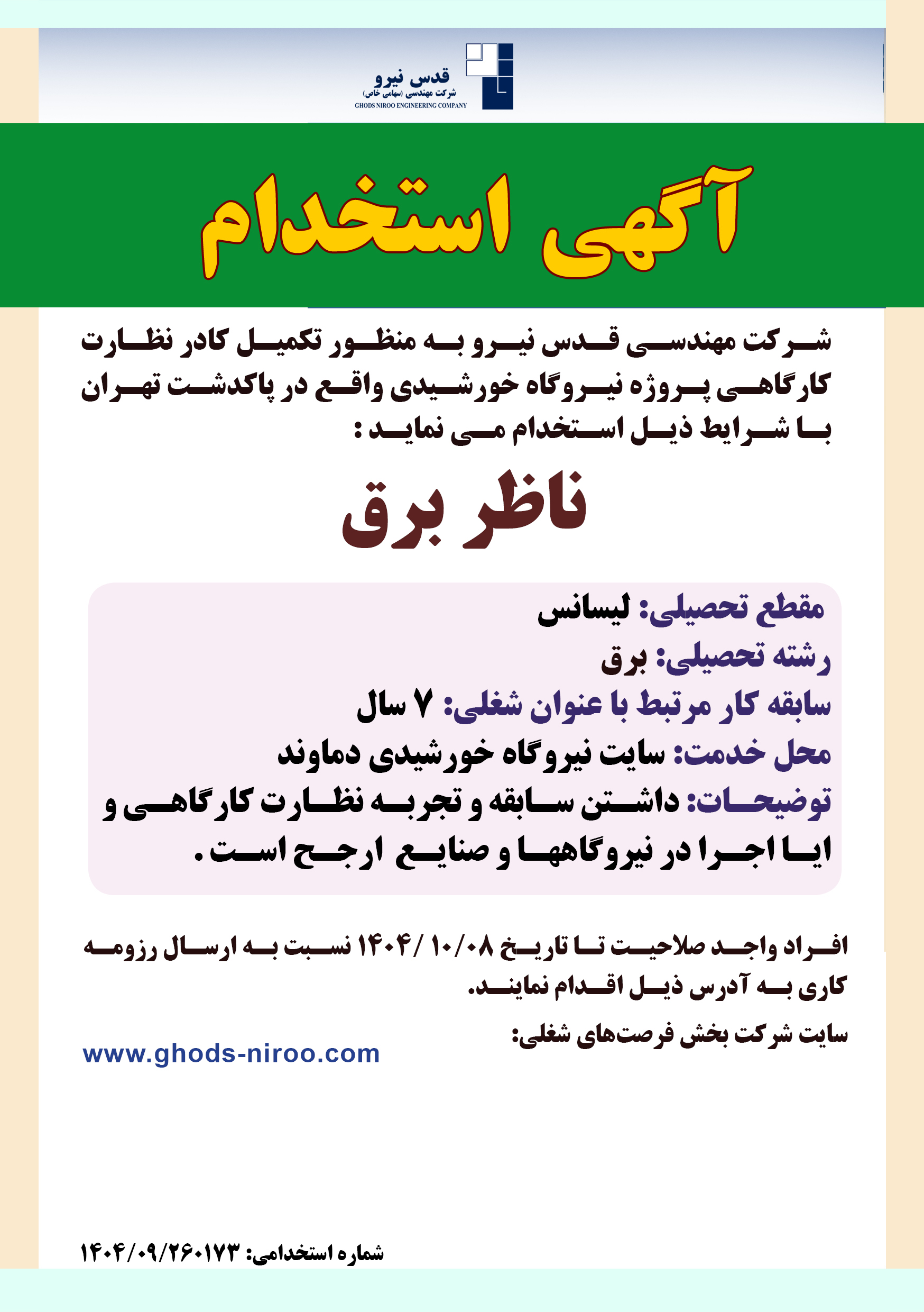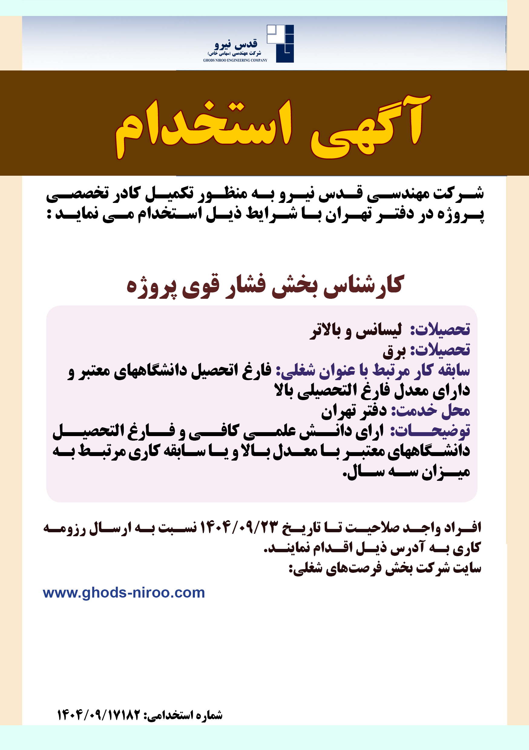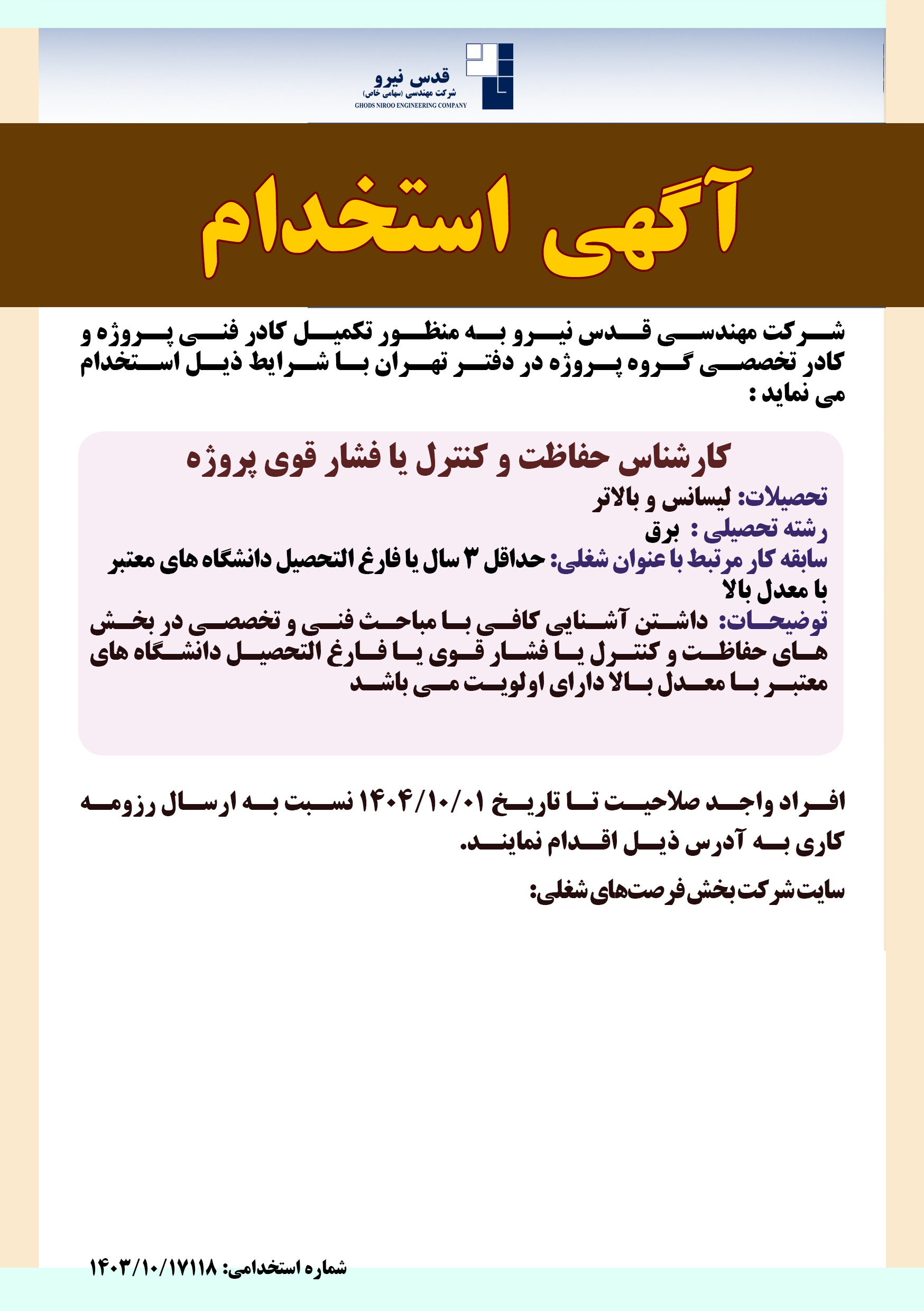شركت مهندسی قدس نيرو با بيش از نيم قرن حضور پرافتخار در صنعت آب و انرژی كشور